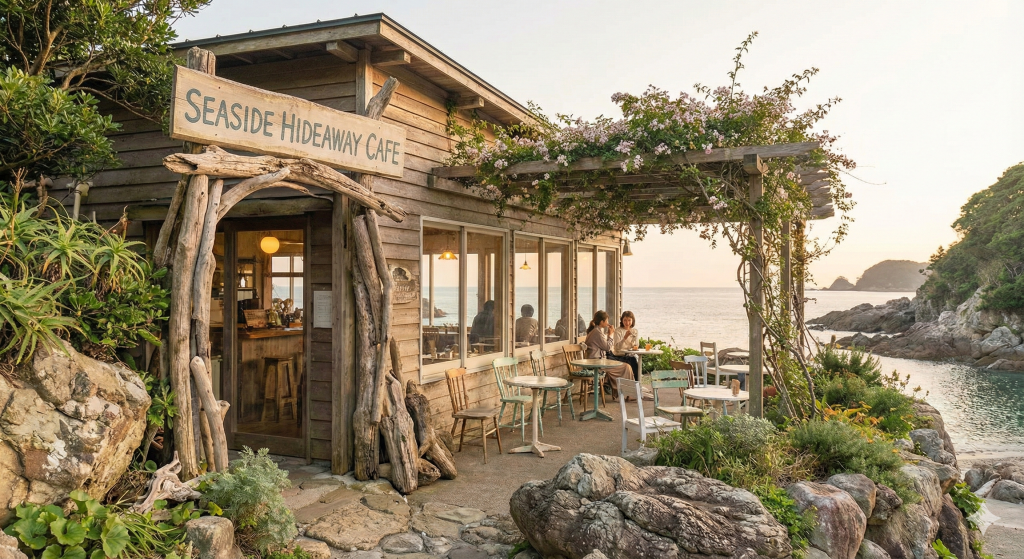 海辺の隠れ家」をテーマに、20代〜30代の女性をターゲットにしたカフェサイトを制作しました。